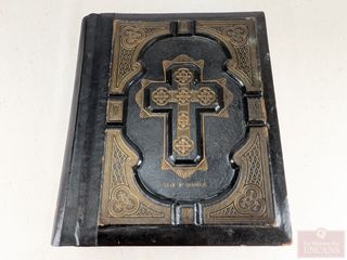 | #145 | Ancienne bible par le révérend Leo Haydock avec reluire en cuir embossé et tranche à la feuille d'or, contenant de multiples gravures, éditée à New-York en 1860 et mesurant 13.25x12 pouces Ancienne bible par le révérend Leo Haydock avec reluire en cuir embossé et tranche à la feuille d'or, contenant de multiples gravures, éditée à New-York en 1860 et mesurant 13.25x12 pouces | ||