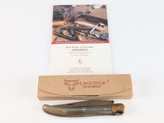 | #222 | Couteau laguiole en Aubrac, mesurant 8.5 pouces au total lorsque déployé, dans sa boite avec livret Couteau laguiole en Aubrac, mesurant 8.5 pouces au total lorsque déployé, dans sa boite avec livret | ||