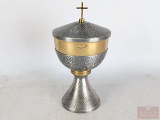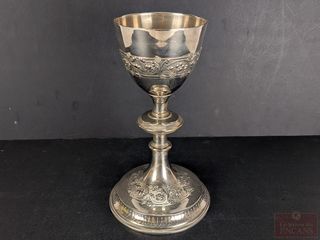 | #3 | Calice en métal argenté et doré, mesurant 9.25 pouces de hauteur Calice en métal argenté et doré, mesurant 9.25 pouces de hauteur | ||