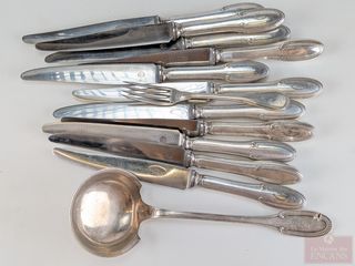 | #153 | Ancienne coutellerie Ercuis, faite à Paris, datant du début du 20eme siècle, les couteaux mesurant 10 pouces de longueur au total Ancienne coutellerie Ercuis, faite à Paris, datant du début du 20eme siècle, les couteaux mesurant 10 pouces de longueur au total | ||