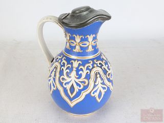 | #45 | Carafe à eau en étain avec poinçon aigle impérial, mesurant 9 pouces de hauteur Carafe à eau en étain avec poinçon aigle impérial, mesurant 9 pouces de hauteur | ||