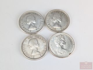 | #223 | Lot de pièces canadiennes de vingt cinq sous en argent, comprenant 1955-60-64-67 Lot de pièces canadiennes de vingt cinq sous en argent, comprenant 1955-60-64-67 | ||