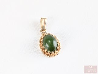 | #74 | Petit pendentif en or 14k avec jade, mesurant 0.75 pouces Petit pendentif en or 14k avec jade, mesurant 0.75 pouces | ||