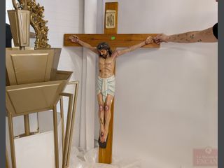 | #179 | Ancien crucifix d'église avec christ en plâtre peint à la main, mesurant 74 pouces de hauteur (bras à recollé) Ancien crucifix d'église avec christ en plâtre peint à la main, mesurant 74 pouces de hauteur (bras à recollé) | ||