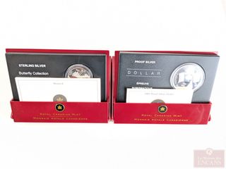 | #202 | Deux pièces canadiennes en argent, dont dollar épreuve numismatique 2005, dans leurs coffrets Deux pièces canadiennes en argent, dont dollar épreuve numismatique 2005, dans leurs coffrets | ||