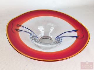 | #27 | Centre de table scandinave Holme Gaard en verre soufflé, fait au Danemark, mesurant 15.5 pouces, avec son étiquette Centre de table scandinave Holme Gaard en verre soufflé, fait au Danemark, mesurant 15.5 pouces, avec son étiquette | ||