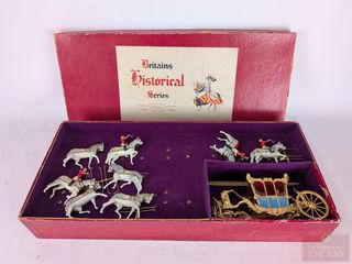| #147 | Modèle-réduit en métal d'une calèche royale 'Britain's Historical Series', fait à Londres, dans sa boite mesurant 18.75 pouces Modèle-réduit en métal d'une calèche royale 'Britain's Historical Series', fait à Londres, dans sa boite mesurant 18.75 pouces | ||