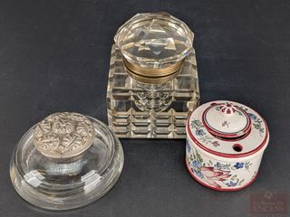 | #44 | Trois encriers, dont un en cristal mesurant 4.75 pouces de hauteur Trois encriers, dont un en cristal mesurant 4.75 pouces de hauteur | ||