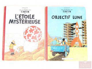 | #40 | Deux bandes-dessinées vintages Tintin Objectif lune et L'étoile mystérieuse, datant des années 1950-1960 Deux bandes-dessinées vintages Tintin Objectif lune et L'étoile mystérieuse, datant des années 1950-1960 | ||