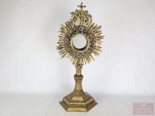 | #172 | Ostensoir en laiton doré finement détaillé, datant du début du 20eme siècle et mesurant 23 pouces de hauteur Ostensoir en laiton doré finement détaillé, datant du début du 20eme siècle et mesurant 23 pouces de hauteur | ||