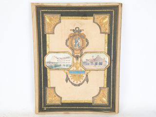 | #161 | Ancien porte-document impérial austro-hongrois en cuir et métal doré avec deux dessins aquarellés d'Auguste Klein, datant du 19eme siècle et mesurant 17x13 pouces Ancien porte-document impérial austro-hongrois en cuir et métal doré avec deux dessins aquarellés d'Auguste Klein, datant du 19eme siècle et mesurant 17x13 pouces | ||