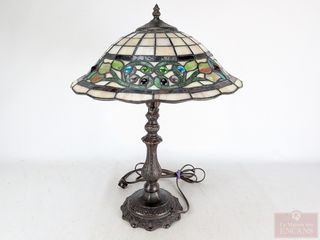 | #14 | Lampe en métal avec abat-jour en vitrail à motif floral, mesurant 19 pouces de hauteur Lampe en métal avec abat-jour en vitrail à motif floral, mesurant 19 pouces de hauteur | ||