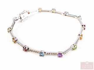 | #206 | Bracelet en argent sterling serti de multiples pierres, avec fermoir double de sécurité, mesurant 7.5 pouces Bracelet en argent sterling serti de multiples pierres, avec fermoir double de sécurité, mesurant 7.5 pouces | ||