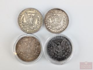 | #183 | Quatre pièces américaines d'un dollar Morgan Dollar en argent, dont trois 1921 et une 1887 Quatre pièces américaines d'un dollar Morgan Dollar en argent, dont trois 1921 et une 1887 | ||