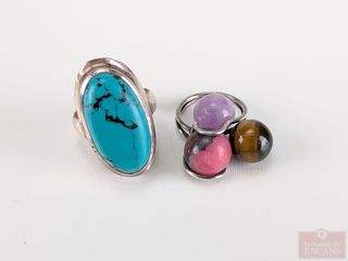 | #214 | Bague en argent sterling sertie d'une turquoise, taille 7, ainsi qu'une bague avec pierres de taille 4.5 Bague en argent sterling sertie d'une turquoise, taille 7, ainsi qu'une bague avec pierres de taille 4.5 | ||