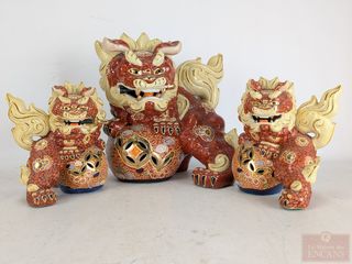 | #30 | Trois porelaines chinoises avec peinture d'or et détails peints à la main, représentant des foo-dogs, le plus grand mesurant 12 pouces de hauteur Trois porelaines chinoises avec peinture d'or et détails peints à la main, représentant des foo-dogs, le plus grand mesurant 12 pouces de hauteur | ||