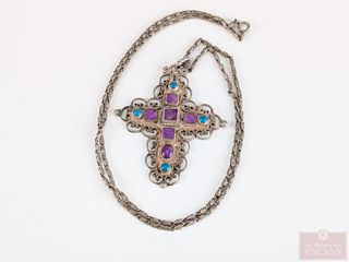 | #211 | Croix et chaine en argent sterling, la croix mesurant 2.75 pouces et la chaine mesurant 24 pouces Croix et chaine en argent sterling, la croix mesurant 2.75 pouces et la chaine mesurant 24 pouces | ||