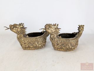 | #165 | Deux dragons chinois en bronze doré, mesurant 11 pouces de longueur chacun Deux dragons chinois en bronze doré, mesurant 11 pouces de longueur chacun | ||
