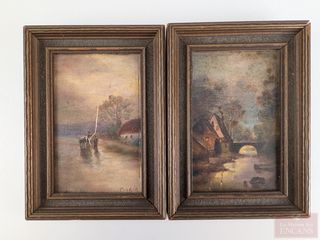 | #23 | Deux huiles sur panneaux signées, mesurant 6x4 pouces chacune Deux huiles sur panneaux signées, mesurant 6x4 pouces chacune | ||