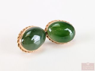 | #224 | Paire de boucles d'oreilles en or 10k avec jade, mesurant 16 millimètres Paire de boucles d'oreilles en or 10k avec jade, mesurant 16 millimètres | ||