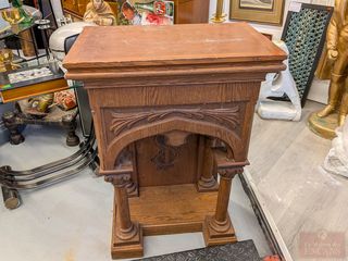| #239 | Petit autel d'église sculpté sur bois, mesurant 26x17x38 pouces Petit autel d'église sculpté sur bois, mesurant 26x17x38 pouces | ||