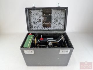 | #154 | Rare machine à coudre Signer portative et électrique, dans son coffret mesurant 14.5 pouces Rare machine à coudre Signer portative et électrique, dans son coffret mesurant 14.5 pouces | ||