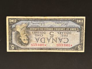 | #12 | Billet de $5 1954 avec astérisque (numéro de remplacement) préfixe i/x (plus rare) Billet de $5 1954 avec astérisque (numéro de remplacement) préfixe i/x (plus rare) | ||