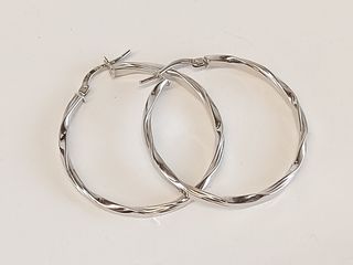 #235Paire de boucles d'oreilles en or blanc 14k mesurant 1.5 pouces
