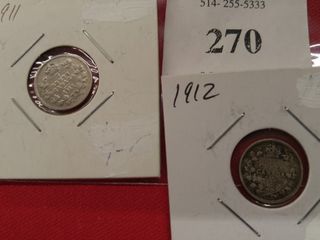 #270Deux pièces de 5 sous - 1911-1912