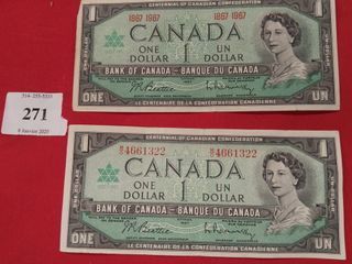 #271Deux billets de 1$ 1967