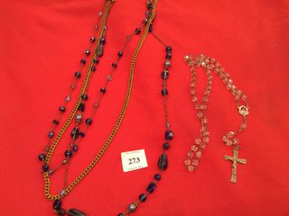 #273Chapelet en crystal de roche circa 1940, et un autre de pierres semi-précieuses.