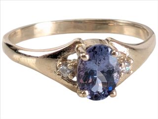 | #29 | Bague en or 10k sertie d'une tanzanite de 0.9 carats et de deux diamants, pour un total de 0.04 carats, taille 7.25 Bague en or 10k sertie d'une tanzanite de 0.9 carats et de deux diamants, pour un total de 0.04 carats, taille 7.25 | ||