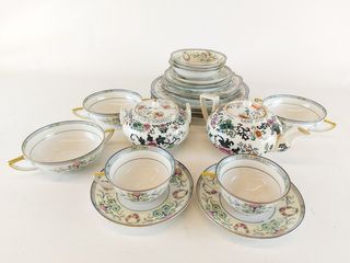 #217Lot de service à thé anglais ancien - avec éléments en ivoire - la théière mesurant 10.5 pouces de hauteur - circa 1900