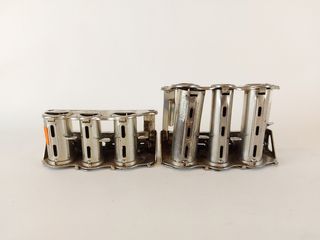 #209Micro vintage de marque Astatic Tug9 Stand USA mesurant 12 pouces de hauteur ainsi que trois petites cruches en grès mesurant 5 pouces de hauteur et deux bobines de film sur Paris 1961