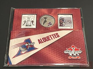 | #255 | Ensemble Timbres et Pièce de 25 Cents 2012 ‘Les Eskimos Edmonton’ - scellé Ensemble Timbres et Pièce de 25 Cents 2012 ‘Les Eskimos Edmonton’ - scellé | ||