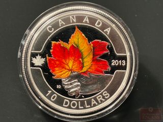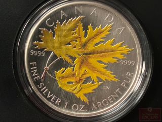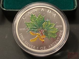| #252 | Pièce de $5 2002 en Argent pur ‘Feuille d’Érable colorée’ PAS DE TAXE Pièce de $5 2002 en Argent pur ‘Feuille d’Érable colorée’ PAS DE TAXE | ||