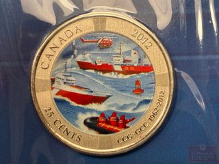 | #234 | Pièce de 25 Cents 2012 ‘50ième anniversaire de la garde côtière Canadienne 1962-2012’ – scellée Pièce de 25 Cents 2012 ‘50ième anniversaire de la garde côtière Canadienne 1962-2012’ – scellée | ||