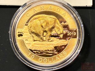 | #226 | Pièce de $10 2013 en Argent pur ‘L’ours polaire’ plaquée Or PAS DE TAXE Pièce de $10 2013 en Argent pur ‘L’ours polaire’ plaquée Or PAS DE TAXE | ||