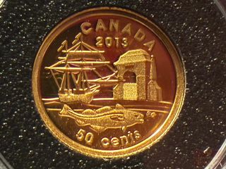 | #259 | Pièce de 50 Cents 2013 en Or pur ‘300ième anniversaire de Louisbourg’ PAS DE TAXE Pièce de 50 Cents 2013 en Or pur ‘300ième anniversaire de Louisbourg’ PAS DE TAXE | ||