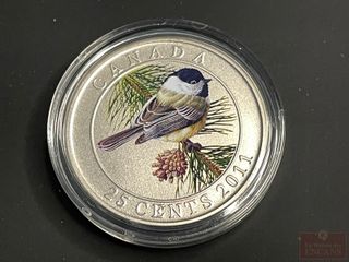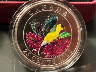 | #293 | Pièce de 25 Cents 2010 colorée ‘Le Chardonneret jaune’ (rare) Pièce de 25 Cents 2010 colorée ‘Le Chardonneret jaune’ (rare) | ||