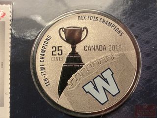| #257 | Ensemble Timbres et Pièce de 25 Cents 2012 ‘Blue Bombers’ – scellé Ensemble Timbres et Pièce de 25 Cents 2012 ‘Blue Bombers’ – scellé | ||