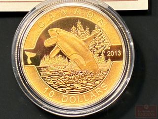 | #227 | Pièce de $10 2013 en Argent pur ‘L’épaulard’ plaquée Or PAS DE TAXE Pièce de $10 2013 en Argent pur ‘L’épaulard’ plaquée Or PAS DE TAXE | ||
