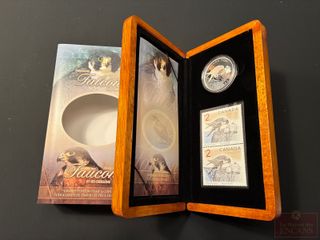 | #304 | Ensemble Timbres et Pièce de $5 2006 en Argent pur ‘Le faucon pèlerin et ses oisillons’ PAS DE TAXE Ensemble Timbres et Pièce de $5 2006 en Argent pur ‘Le faucon pèlerin et ses oisillons’ PAS DE TAXE | ||