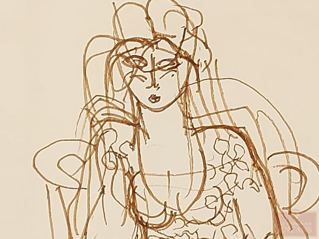 Lot # 6 - J. BENEDIT- Encre sur papier signée, mesurant14.5x8.5 pouces SOLD