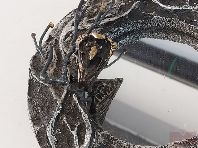 Lot # 25 - GARNO (Jean-Paul Garneau)- Miroir vintage en aluminium et bronze, signé et mesurant 9 pouces de diamètre SOLD