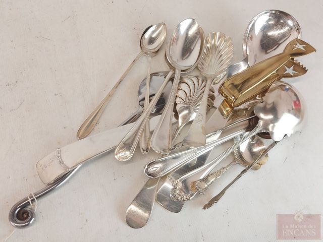 Lot # 157 - Gros lot d'argenterie comprenant coutelleries, bougeoirs, plats de service et autres, le plus grand plat mesurant 15 pouces de diamètre SOLD