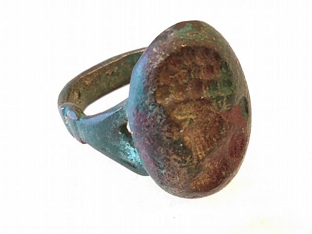 Lot # 143 - Superbe et très ancienne bague d'officier romain avec son sceau - Empire Romain IIe ou IIIe siècle avec une magnifique patine VENDU
