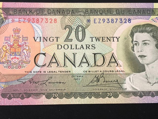 Lot # 108 - Billet de $20 de 1969 avec astérisque en excellente condition AU-55 superbe VENDU