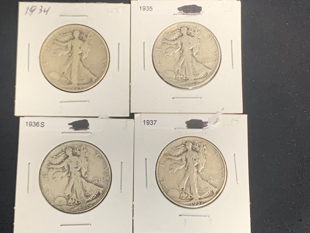 Lot # 204 - Quatre pièces de 50 cents américains en argent de 1934 – 1935 - 1936 S – 1937 SOLD