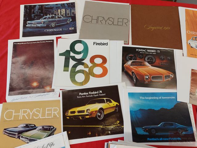 Lot # 163 - Gros lot de fascicules automobiles dont Pontiac Firebird, Chevrolet Corvette, Ford Mustang, Dodge Monaco, Ford Pinto, Chevrolet El Camino, Buick, Mercury Monterrey, Mercury Marquis, Datsun 240z, Datsun Z, Dodge Charger, Dodge Coronet, International Scout, Dodge Magnum, Dodge Royal, Ford Grand Marquis, Dodge Deluxe, Dodge Custom Royal, Dodge Charger 1970 et autres SOLD